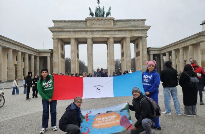 Berlín, 25 de marzo de 2026. Con dinero alemán no se debe financiar la destrucción ambiental en la Bahía de Ohuira. Con este mensaje claro, una delegación de la iniciativa mexicana “¡Aquí No!” viajó a Alemania. Su objetivo: impedir la finalización de la que se perfila como la planta de amoniaco más grande de América Latina, ubicada en el humedal protegido de Santa María-Topolobampo-Ohuira. Las y los activistas preven un colapso ecológico-social de la laguna y, con ello, la pérdida del sustento y entorno de las comunidades indígenas locales.